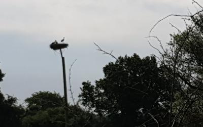 Das Wetter hat gehalten obwohl sich im Stau der Mittelgebirge die Wolken immer höher türmten. Kurz vor Haus Assen (ob der Weg noch vor dem Fahradton 2019 fertig wird?) habe ich einen Dachs durch eine Kornfurche laufen sehen. Ein Reh kreuzte meinen Weg, Bussarde und Falken flogen über Wiesen und Felder, Jungstörche saßen in ihren Nestern und Vogelbeobachter in den Aussichtsplattformen.