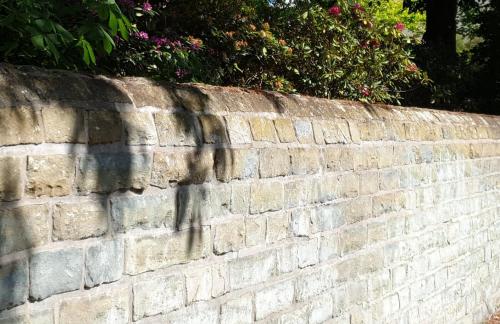 Seine offenporige weiche Struktur nimmt Feuchtigkeit auf, was dazu führt, dass der Stein leicht verwittert. Mit modernen Materialien verfugt ragen nach einigen Jahrzehnten die Mörtelreste unschön aus der Wand. Der ursprünglichen Mörtel bestand aus Lehm und kleinen Steinen, was im Verwitterungsprozess ausgewaschen wurde. Der Steinmetz, der solche Flächen pflegt nutzt mit Pressluft schlagende Nägel um die verwitterte Struktur zu glätten, so dass sie auch Jahrzehnte später noch gut aussieht